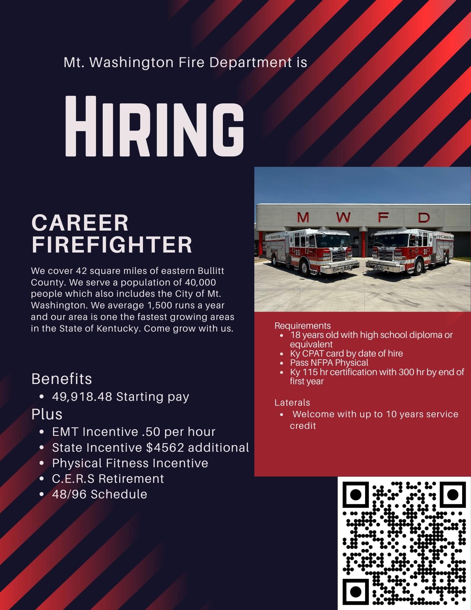 Employment opportunities listed on this page must be provided to the Fire Commission as a hyperlink or in a "ready-to-publish" format (in PDF or JPG), and emailed to kyfirecommission@kctcs.edu.