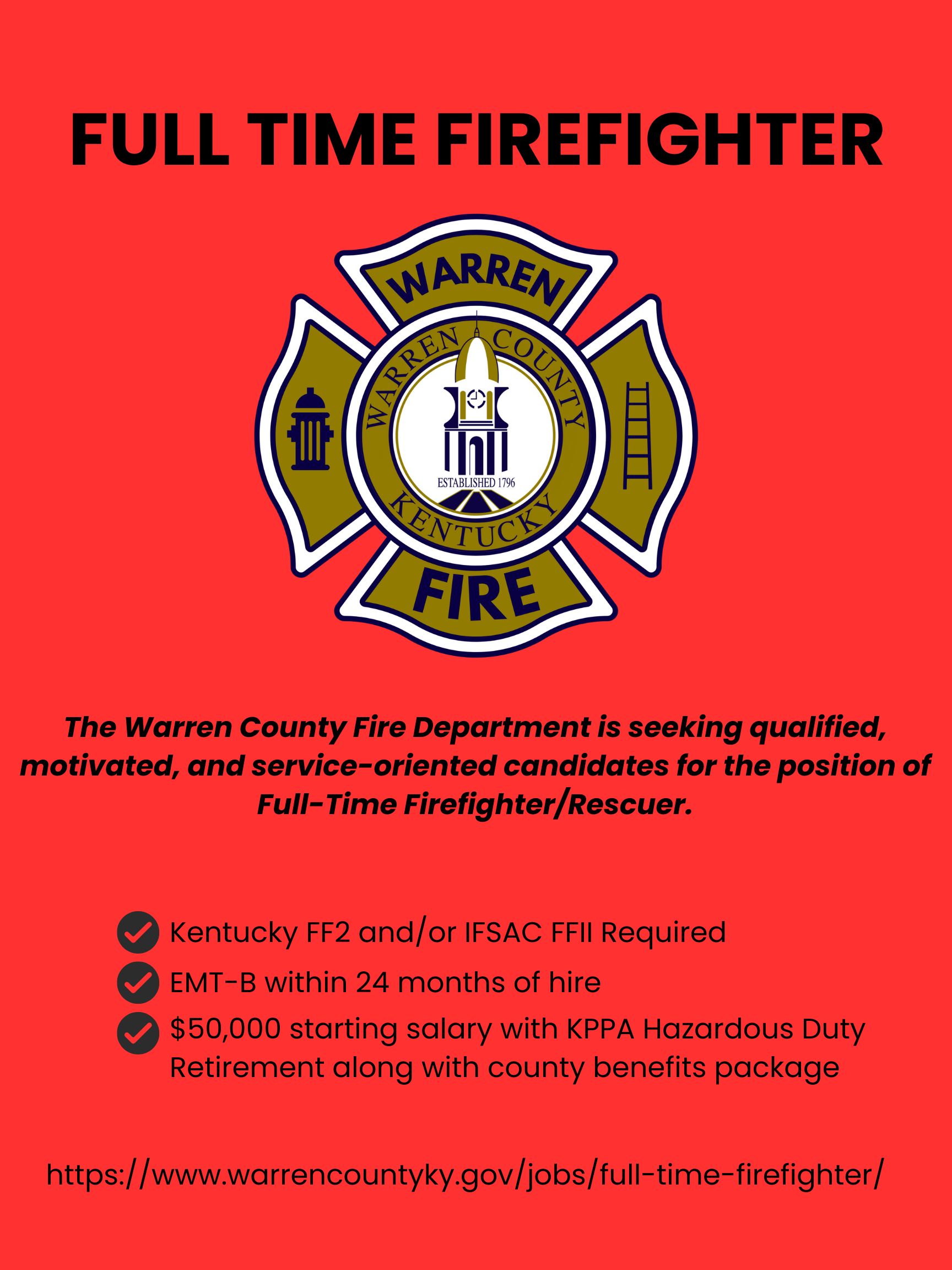- Firefighter - Warren County Fire Department; applications accepted through October 24, 2025