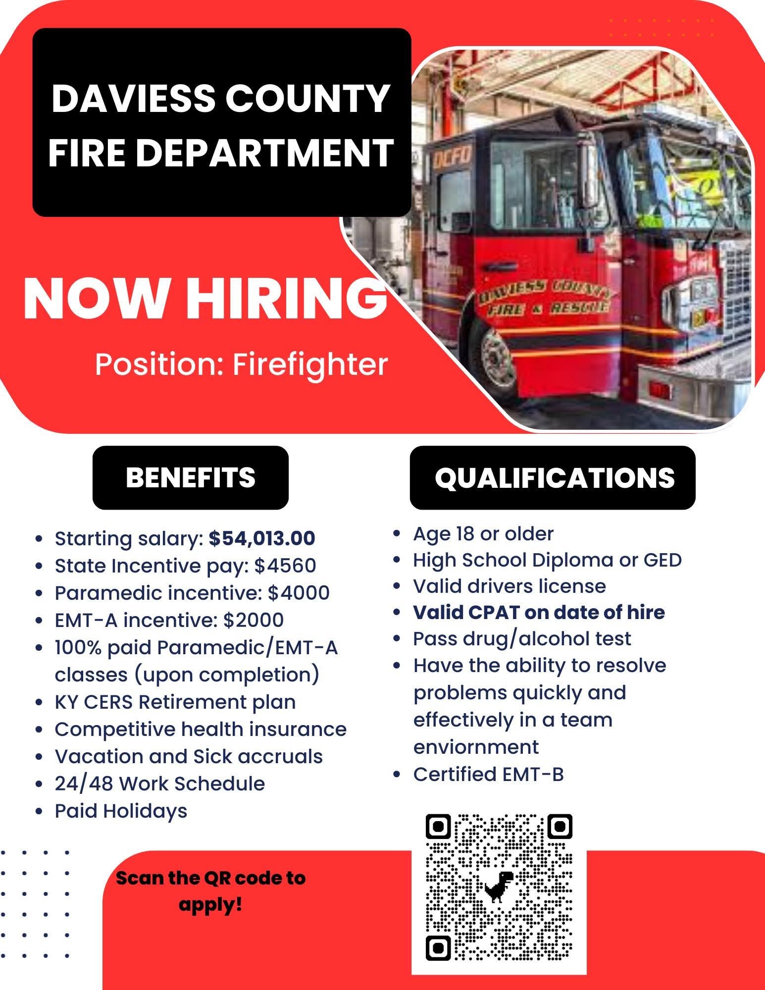 - Firefighter - Owensboro Fire Department; applications accepted through March 14, 2026