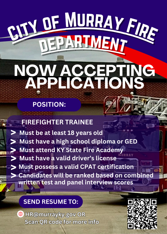 - Firefighter Trainee - Murray Fire Department; applications accepted through March 2, 2026